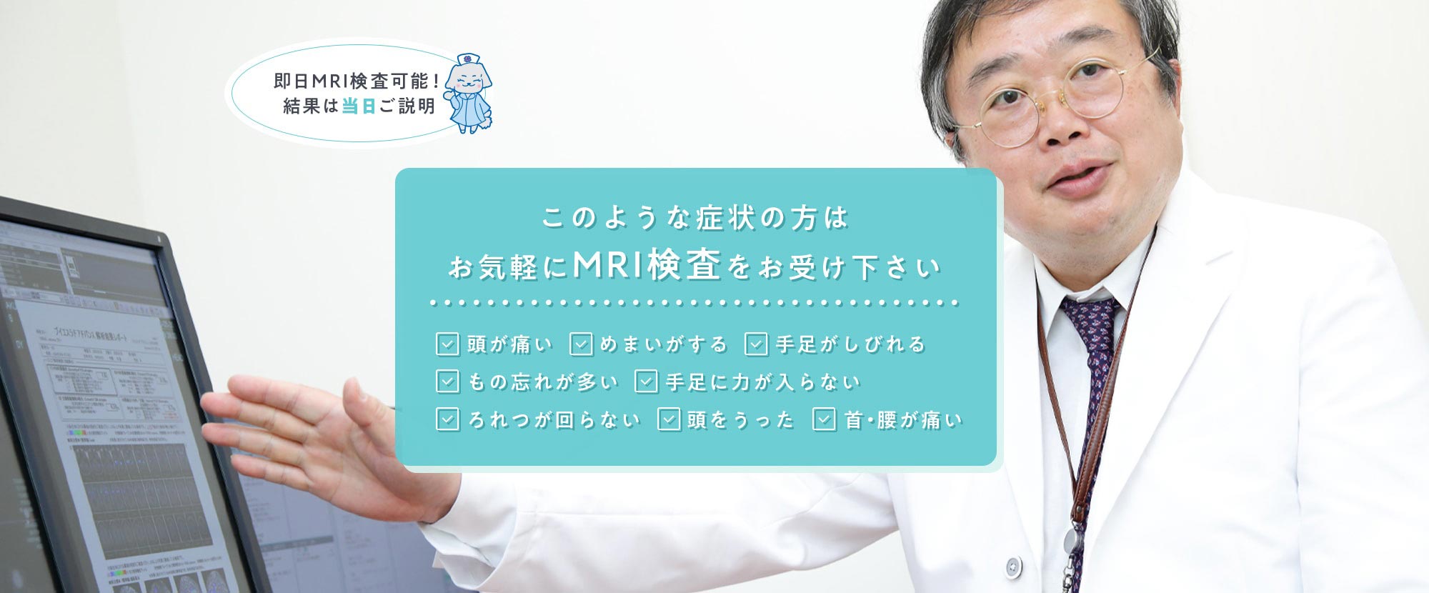 当院ではMRIを用いて、しっかりとその判断を行います。危険な頭痛でない事が確認できましたら、頭痛の原因と治療法について考えます。ここまでを1回のご来院で完結させる事が当院のコンセプトです。