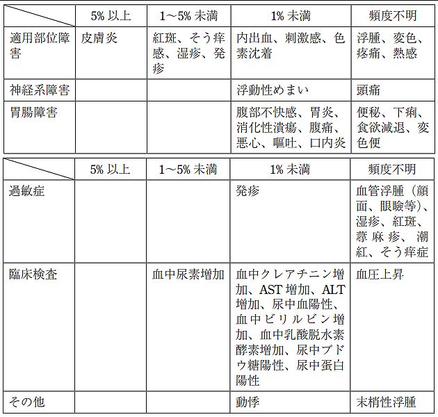 一応、副作用について触れておきますが、目立つ副作用は前述のかぶれ等が含まれる皮膚炎です。次点で発疹や湿疹、痒みなどの症状です。画像をご覧いただければわかると思いますが、特別デメリットが多い薬ではないです。